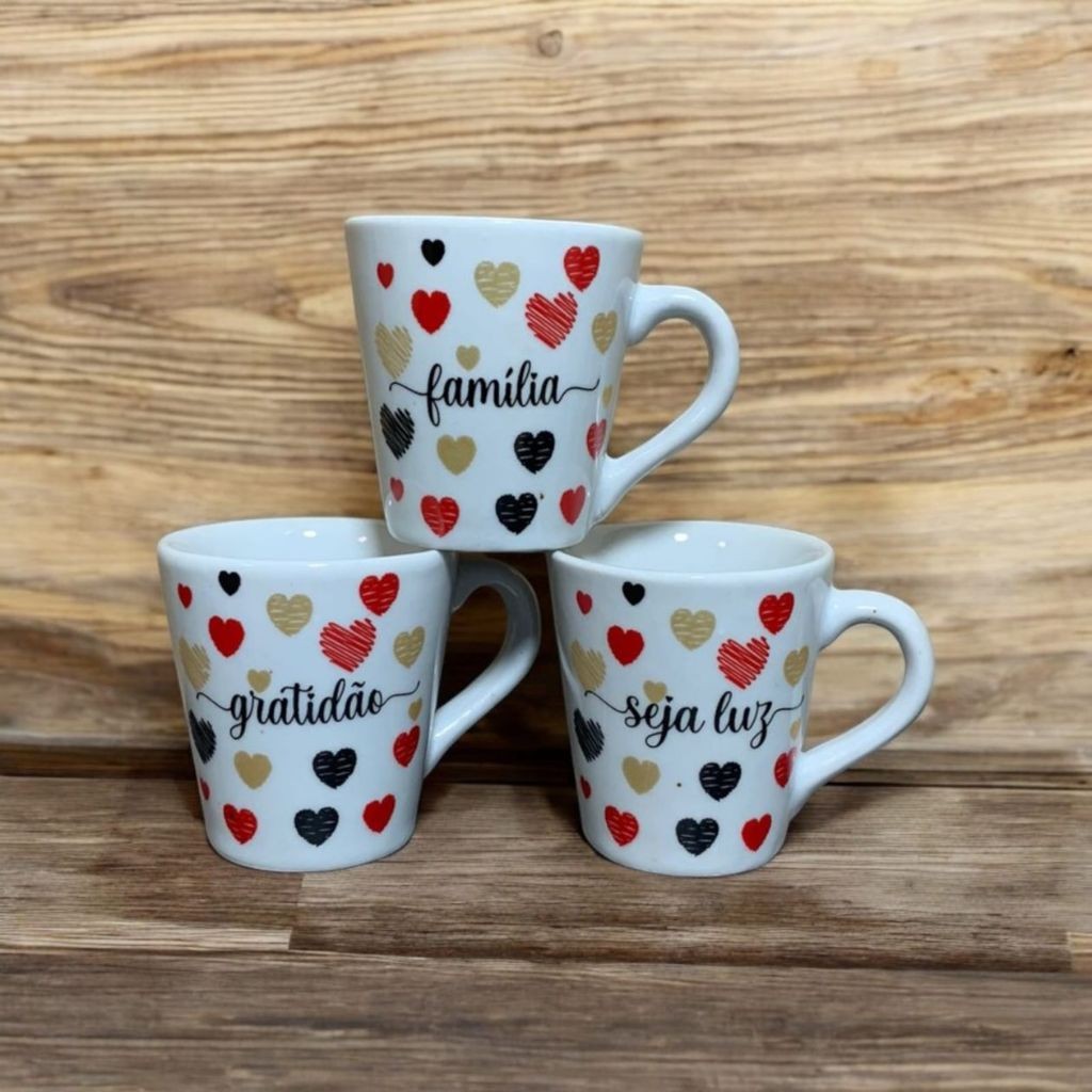 Jogo 12 Caneca Porcelana Frases Coração Motivação Xícara Chá Café
