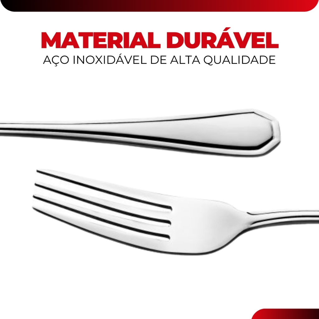 A linha Continental tem design em angulos, muito bonita e com qualidade superior. E uma boa opcao para bares, buffet, restaurantes e como presente. Medidas: . Comprimento Total: 230 mm . Comprimento Lamina: 113 mm . Espessura: 4,00 mm Conteudo Da Embalagem: . 12 Garfos Cuidados: Para manter seus talheres sempre brilhando, lave com esponja macia, sabao ou detergente neutro. Produtos abrasivos como palha de aco podem riscar e prejudicar o brilho. Seque imediatamente para evitar manchas. Recomenda-se o uso de agua quente para melhorar o brilho Nao guarde em local umido, a umidade pode provocar manchas. Importante: Garantia de 3 Meses. Valor do Kit. Imagens Meramente Ilustrativas. Nao nos responsabilizamos pelo mau uso do produto.