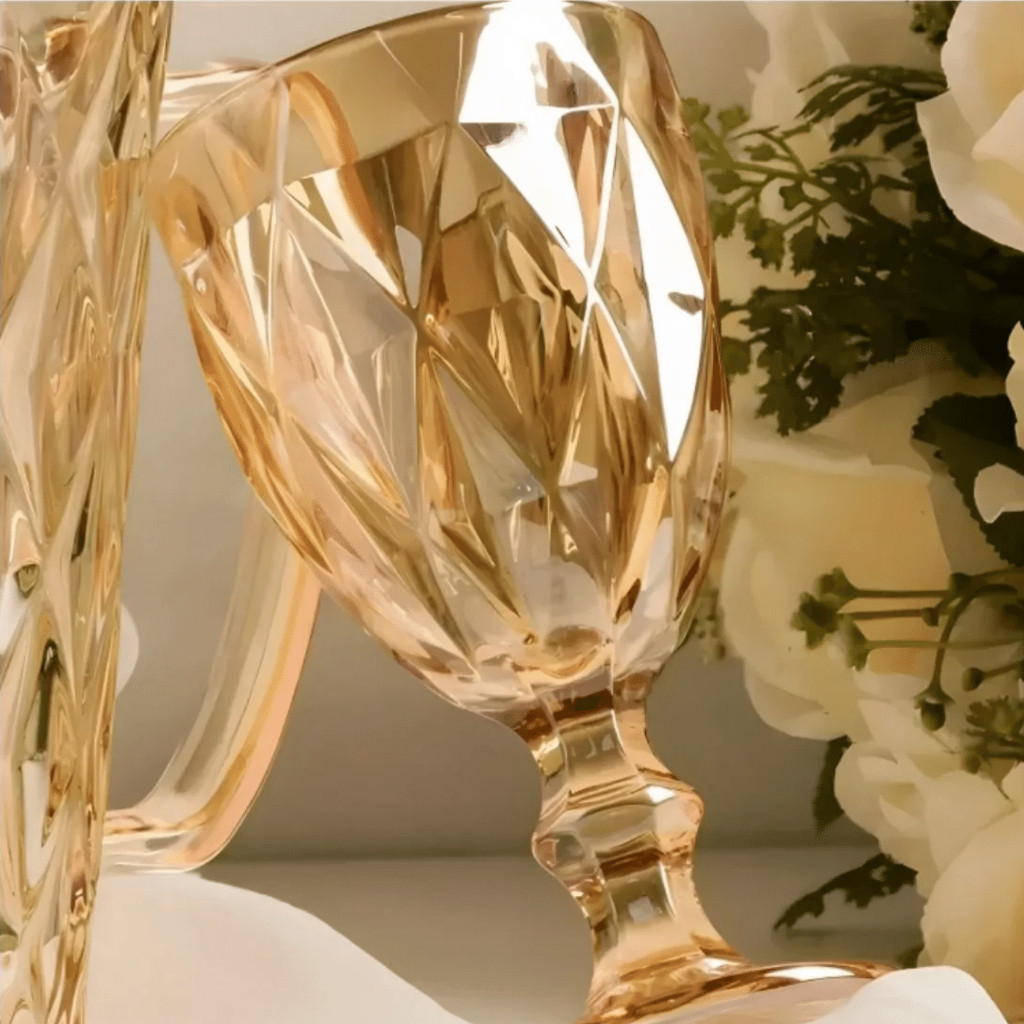 Jogo 12 Taça Diamante Copo Vidro Ouro Ambar Bico De Jaca 320ml