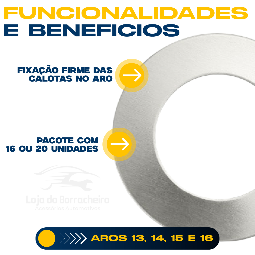 Jogo 16 Arruelas Para Calotas Aro 13 14 15 16 Aço Universal
