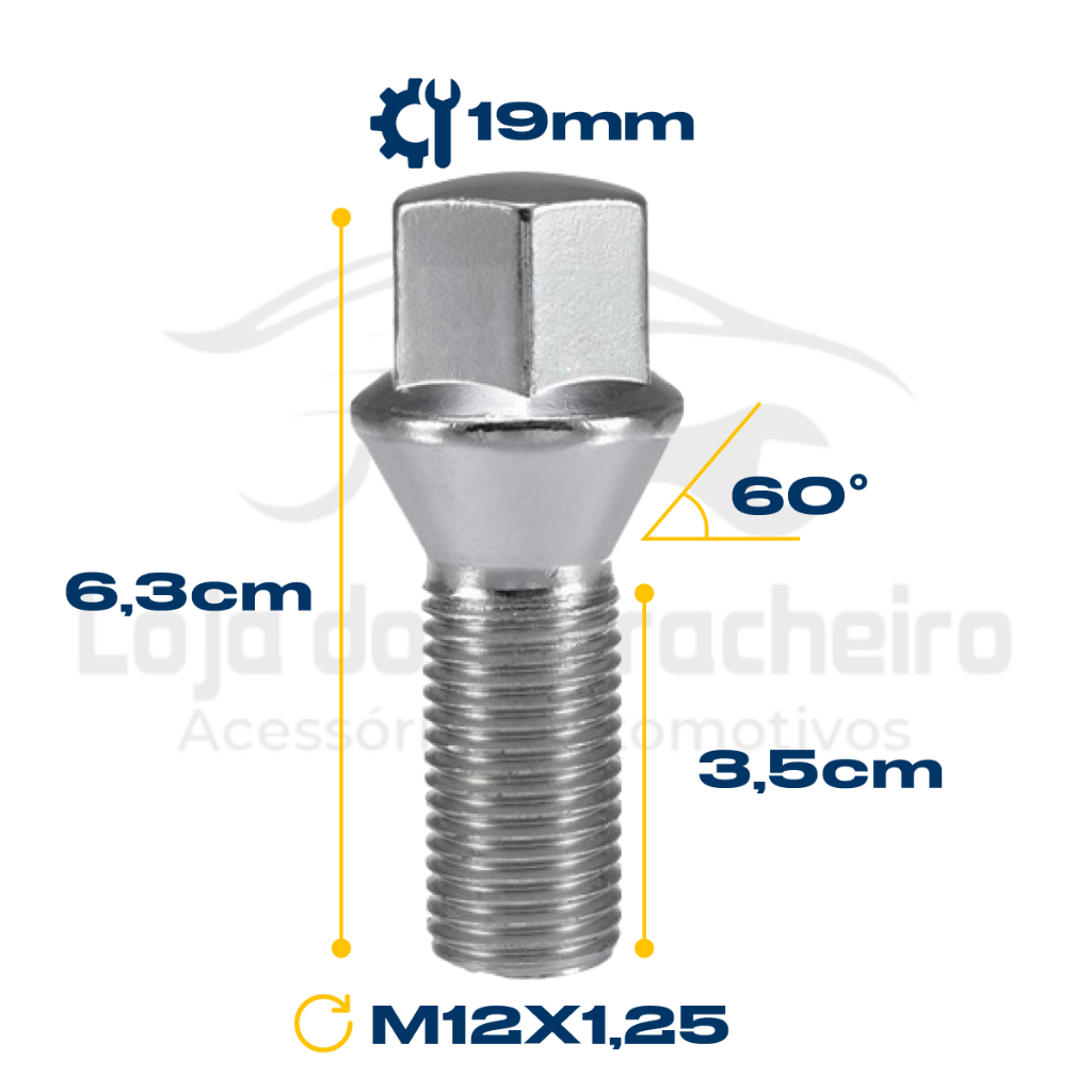 Jogo Parafusos Cromados Modelo Longo para Rodas Fiat 16 Peças Está a procura de parafusos de extrema qualidade para rodas de liga leve? Achou o anuncio certo. Pois nós temos os parafusos ideais para as rodas de seu Fiat, para dar a segurança e o visual que seu carro precisa. Os parafusos de modelo cônico que encaixam perfeitamente nas rodas e dão mais amplitude para que possam ser rosqueados com mais profundidade e segurança. E o cromo que da um visual belíssimo para as rodas do seu veiculo. Os parafusos de modelo longo são recomendáveis para utilização em rodas que utilizam espaçador e necessitam de mais rosca nos parafusos para fixação mais segura das rodas no carro. Ficha técnica: Rosca: M12x1,25 Chave sextavado: 19mm Medidas: 6,3cm (Foto 2 ilustrando melhor acima) Material: Aço 10B 22 Recomendações para uso: Fiat Palio, Uno, Marea, Bravo, Brava, Punto, Siena, Argo, Mobi, Stilo e Strada. Compatível também com rodas Peugeot e Citroen. Para mais produtos e acessórios acesse nossa aba de produtos e confira a variedade que oferecemos. Temos a PRONTA ENTREGA e o melhor separamos e embalamos todos os produtos no máximo em 12 horas após a confirmação da compra (Exceto finais de semana e feriados). PERGUNTAS FREQUENTES: Serve para usar com o espaçador de 13,5cm? Serve sim, é específico para uso com o espaçador. Você emite Nota Fiscal para compra realizada através de CNPJ ? Sim, emitimos tanto para CNPJ quanto para pessoa física. Estes parafuso é com as capas cromadas ou é uma só peça fixa? São peças fixas em aço. Qual a dureza desses parafusos? O material dos parafusos são aço, e a durabilidade é indeterminada ela depende de vários fatores e cuidados básicos para preservação das peças.