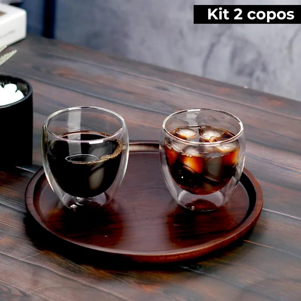 Jogo 2 Copo Vidro Duplo Borossilicato Café Expresso Chá Capuccino 100ml