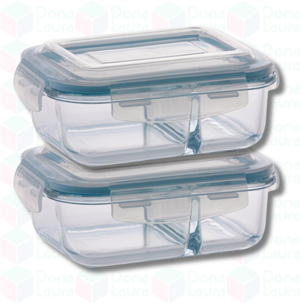 Jogo 2 Potes 640ml Divisória Hermético Marmita Microondas