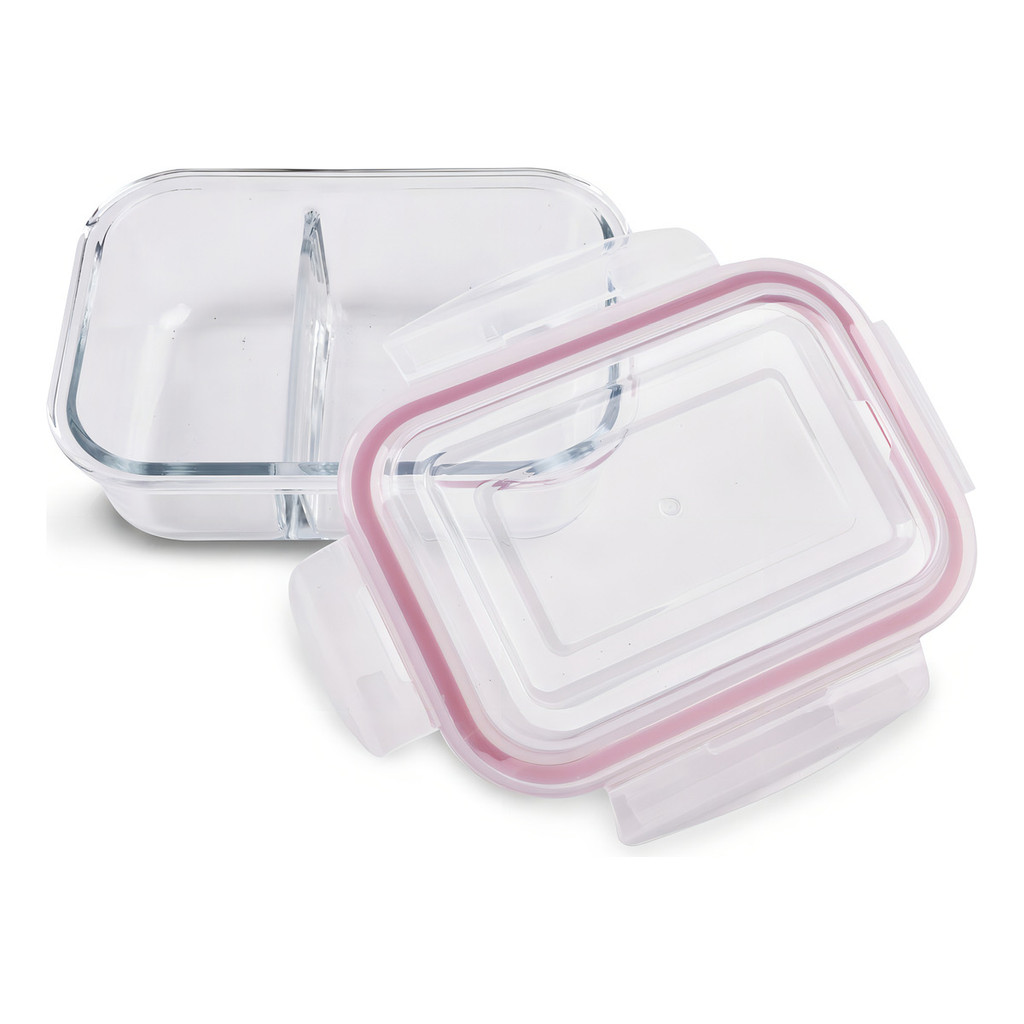 Jogo 2 Potes de Vidro 600ml 2 Divisórias Hermético Marmita Fit Quadrada Com Trava