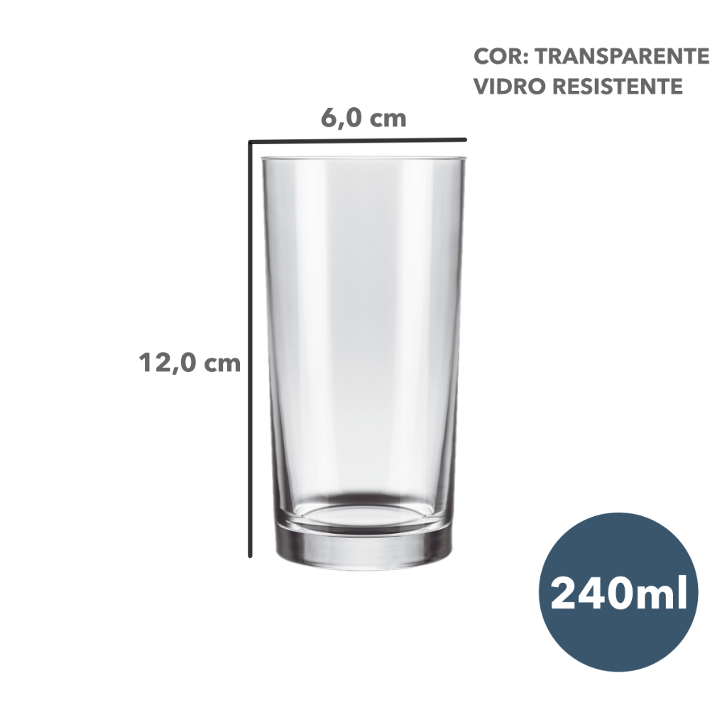 **PRODUTO PRONTA ENTREGA | ENVIO IMEDIATO** 🚚💨 Com o charme londrino o Copo Londres de 240ml com elegância e sofisticação para transformar qualquer mesa. Perfeito para servir bebidas, sucos, refrigerantes, água e chás com estilo! 🍹✨ ✅ Embalagem: 06, 10, 12, 18 e 24 Copos ( ESCOLHA A QUANTIDADE NO ATO DA COMPRA ) ✅ ✅ JOGO COM COPOS LONDRES VIDRO - 240ml ✅ - Fabricante: PratiCasa ( IMPORTADO ) - Material: Vidro - Cor: Transparente - Modelo: Bristol - Dimensões: 12,0 x 6,0 cm - Capacidade: 240ml - Ideal para: Água, Vinho, Refrigerante e Suco - Peças medidas até o volume máximo. - Pode haver uma variação de até 10% no volume. - Pode ser levado ao lava-louças. 🧼 ---------------------------- Após a compra, se precisar falar com as pessoas, é só usar o campo de mensagens. Não precisa abrir uma consulta! Resolveremos tudo rapidinho. 😉 Dúvidas? Estamos aqui para ajudar! 💬 Segurança garantida: Oferecemos embalagens de transporte super seguras. 📦 Produtos certificados. ✅ Equipe 123 Home.