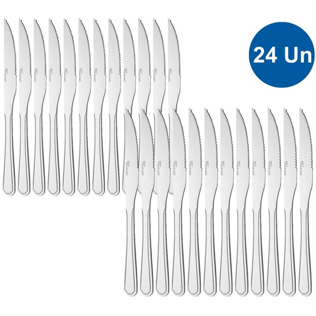 Jogo 24 Faca Churrasco Mesa Restaurante Buffet Premium Conjunto Aço Inox Continental Original Line