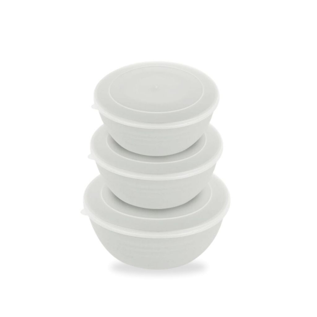 Jogo 3 Bowls Fibra Com Tampa 350ml 600ml 800ml Off white Preparar Armazenar e Servir