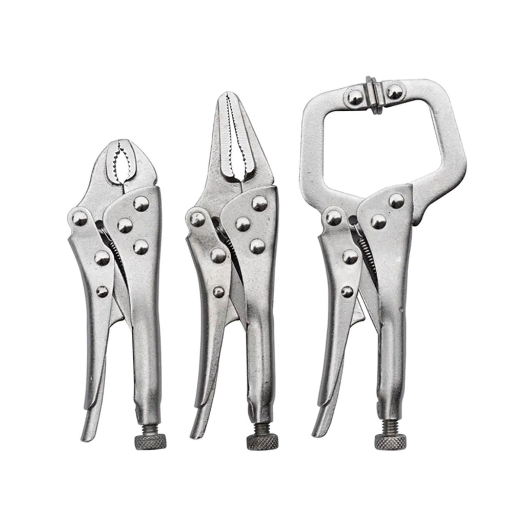 Jogo 3 Mini Alicate De Pressão 4 Polegadas Mordente Bico Reto Curvo e Para Solda Abertura 25 a 35mm