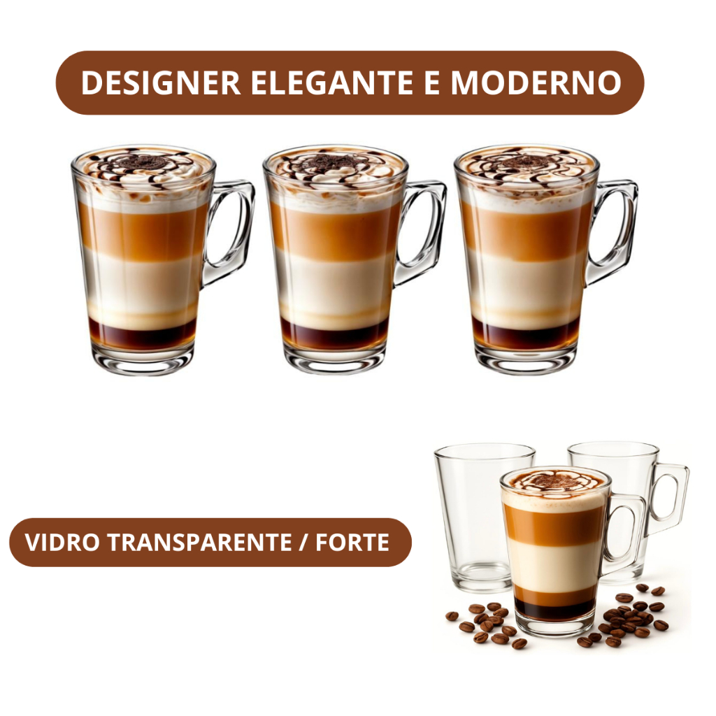 Jogo de 3 ou 6 Canecas Tipo DOLCE GUSTO / NESPRESSO - Taças para Cappuccino, Café Expresso e Chá - 185ml Desfrute de seus momentos de café com um toque de sofisticação e praticidade. O Jogo de Canecas Tipo Nespresso foi projetado para realçar a experiência de degustação, seja para um expresso intenso, um cappuccino cremoso ou um chá relaxante. Fabricadas em vidro grosso de 3mm, essas canecas combinam resistência e elegância. Sua alça de 1,5 cm proporciona um manuseio seguro e confortável, enquanto o design moderno torna este conjunto ideal tanto para o dia a dia quanto para ocasiões especiais. Características do Produto: Conjunto com 3 ou 6 canecas de vidro Vidro de 3mm de espessura, garantindo maior durabilidade Alça ergonômica de 1,5 cm, proporcionando um manuseio confortável Ideal para café expresso, cappuccino, chá e outras bebidas quentes Design moderno, sofisticado e versátil Ficha Técnica: Capacidade: 185ml Altura: 9,5cm Largura: 7,cm Material: Vidro resistente Perguntas e Respostas: As canecas podem ser usadas no micro-ondas? Sim, por serem de vidro resistente, podem ser utilizadas no micro-ondas. As canecas são empilháveis? Sim, o design permite que sejam empilhadas para melhor organização. A alça esquenta com líquidos quentes? Não, a alça de vidro mantém o conforto térmico durante o uso. Posso lavar na lava-louças? Sim, são compatíveis com lava-louças sem risco de danos. O vidro é resistente a variações de temperatura? Sim, o vidro grosso suporta bem mudanças de temperatura, mas evite choque térmico extremo. Qual o tamanho das canecas em comparação com um copo comum? Elas possuem 9,5 cm de altura e são perfeitas para doses médias de café ou chá. O kit vem bem embalado? Sim, as canecas são enviadas com proteção reforçada para evitar danos no transporte. Aproveite e leve agora o seu Jogo de 3 ou 6 Canecas Tipo Nespresso para tornar seus momentos de café ainda mais especiais!