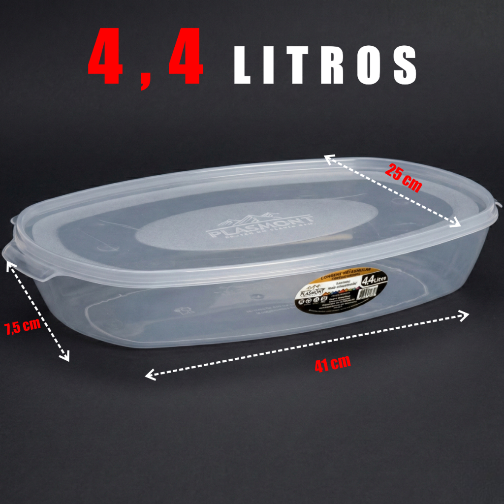 Jogo 3 Potes 4,4 Litros Transparente Retangular Reforçado