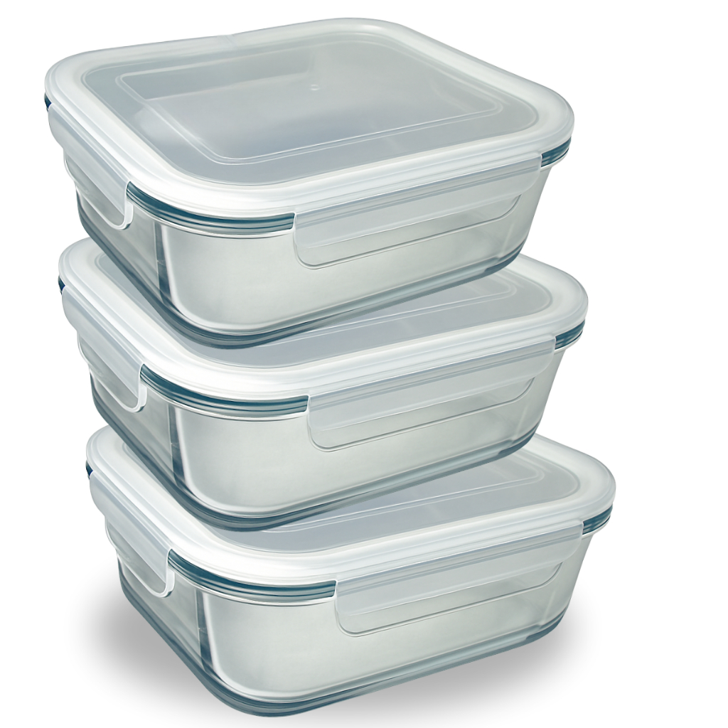 Jogo 3 Potes de Vidro com Tampa Marmita, Freezer e Micro-ondas potes herméticos porta mantimentos vidro comida saudável