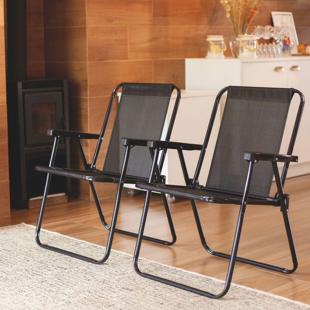 Jogo 4 Cadeira Alta Preta MOR Dobrável Reforçada até 110kg Praia Varanda Camping Jardim