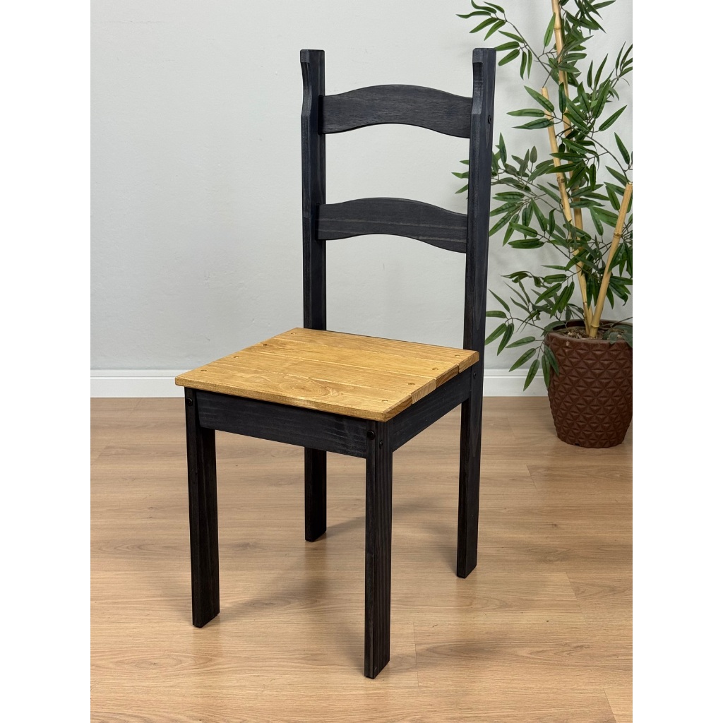 Kit 4 Cadeiras De Madeira Maciça Ripada Dimensões da cadeira montada: - Altura total: 95 cm - Altura assento até o chão: 44 cm - Profundidade: 44 cm - Largura: 38 cm - Pode ser utilizada em pequenas cozinhas, sala de jantar, mesa de reunião. - Inteira de madeira maciça pinus, encerado e pintado para maior durabilidade da madeira. - Fácil de limpar e conservar a madeira, passando óleo de peroba. Montagem simples, acompanha manual e parafusos.