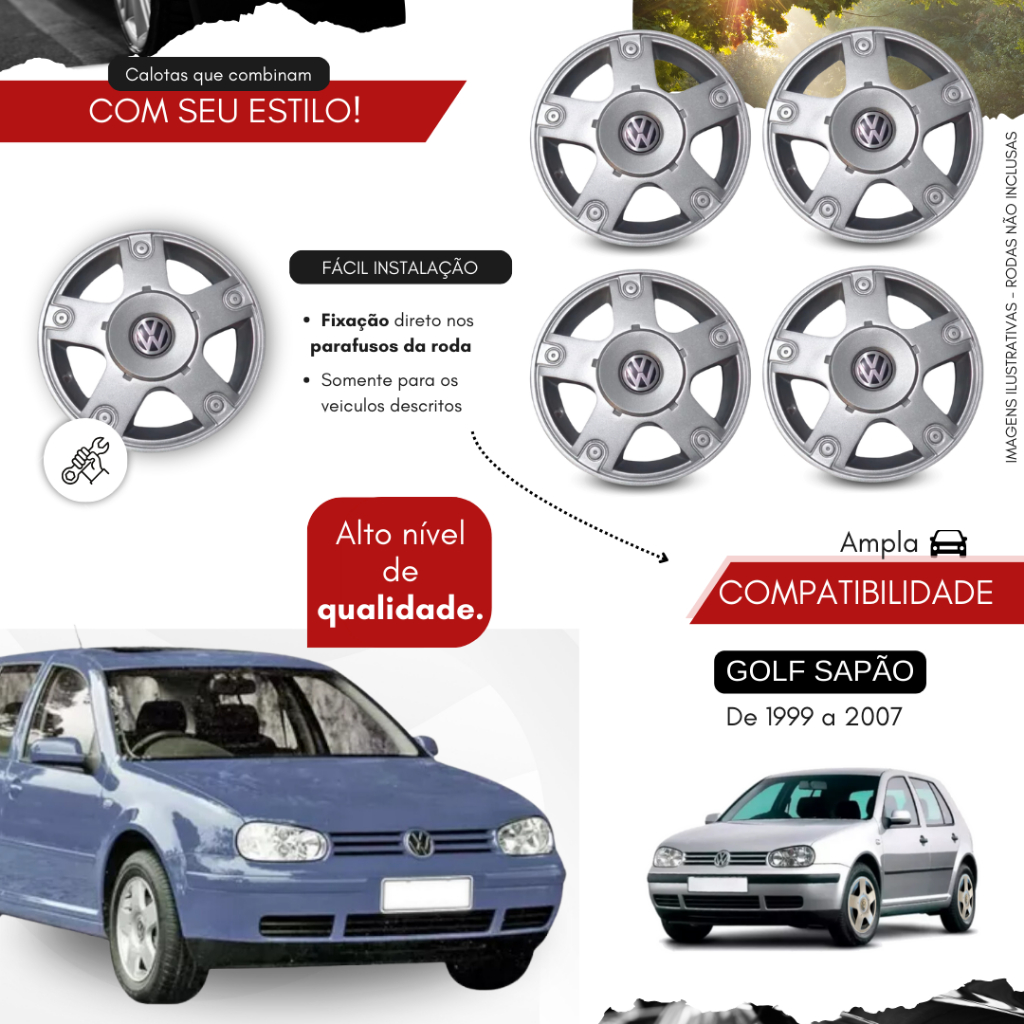 Jogo 4 Calota Centro Roda Volkswagen Vw Golf 199 2000