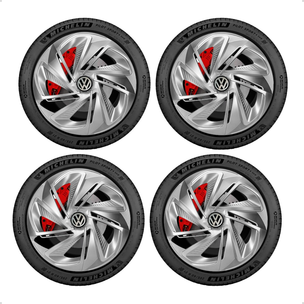 Jogo 4 Calota Vw Gol G3 G4 G5 G6 G7 Aro 14 Prata + Emblema - Prateado