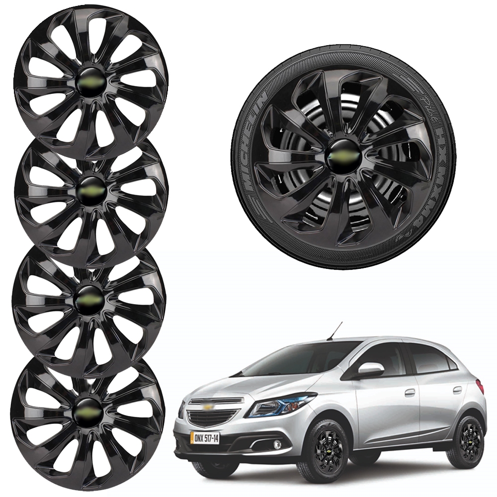 Jogo 4 Calotas Aro 13 14 15 Velox Black Compativel Com Celta Corsa Onix