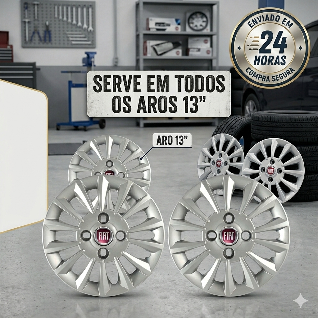 | Jogo 4 Calotas Fiat Linea Uno Palio Siena Fiorino Strada Aro 13 este produto | R$ 71,90 | — | 4.8/5 | — |