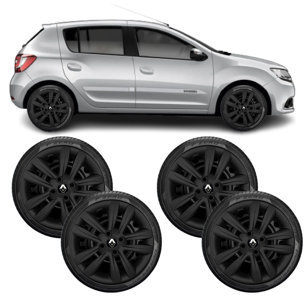 Jogo 4 calotas Renault Sandero Logan aro 14 Preto fosco