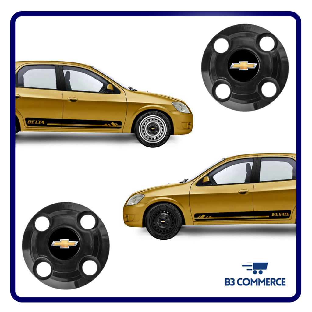 SEJAM BEM VINDOS A B3 COMMERCE JOGO 4 CALOTINHAS CENTRAIS GM CORSA CELTA PRISMA ONIX 4X100 ARO 13 14 15 PRETO Características Principais: - Construção Durável: Feitas de materiais resistentes para resistir a condições variadas. - Montagem Sem Arruelas: Instalação simples e rápida, sem a necessidade de arruelas adicionais. - Proteção Adicional: Protege as rodas contra sujeira, poeira e pequenos danos. - Modelo universal: Serve em TODAS as rodas de ferro aro 13, 14 e 15 que tenha 4 furos, independente da montadora. Compatibilidade: - Rodas de Ferro Aro 13 (Todas) - Rodas de Ferro Aro 14 (Todas) - Rodas de Ferro Aro 15 (Todas) Características: - Cor: Preto - Furação: 4x98 / 4x100 / 4x108 Fixação: - Por Parafusos Especificações Técnicas: - Cor: Preto Brilhante (Não é pintura e não descasca) - Material: Plástico PP - Fixação: Através dos parafusos da própria roda do veículo - Incluso: 4 calotas e 4 emblemas resinados da montadora Importante: - Valor do anúncio referente ao jogo de 4 calotas + 4 emblemas da montadora. - Acompanha Nota Fiscal. - Envio imediato. Mantenha seu carro elegante e atualizado com nossas calotas de centro de roda New Black. Adquira o seu conjunto hoje mesmo!