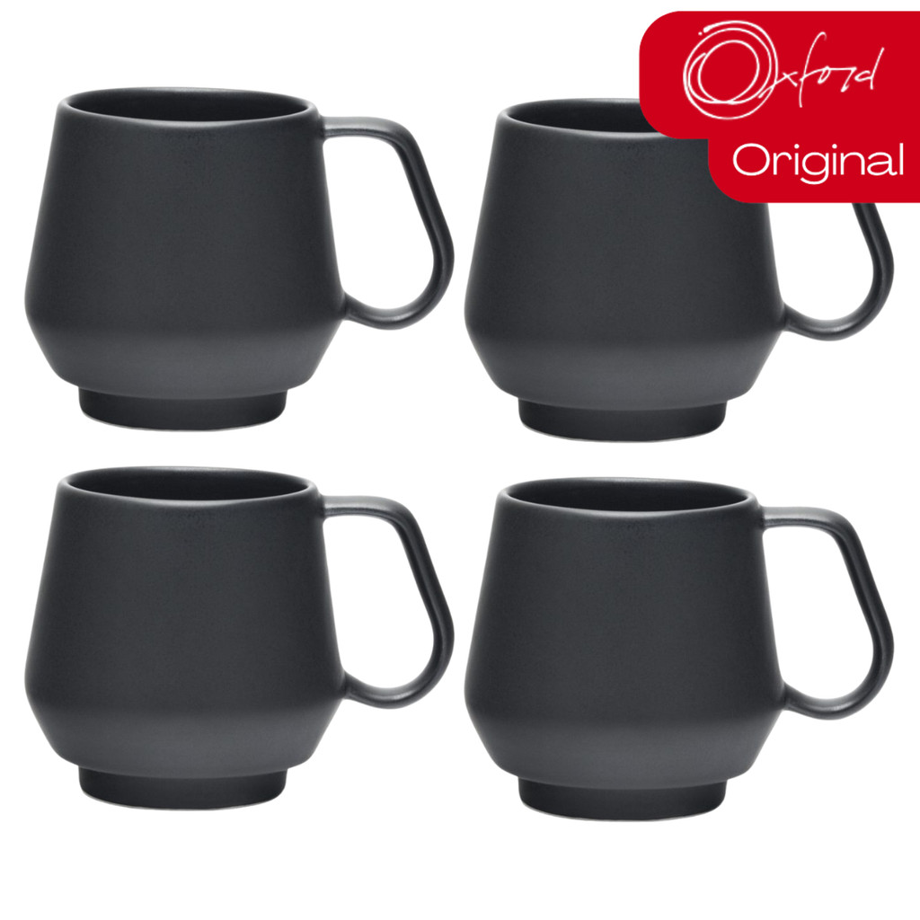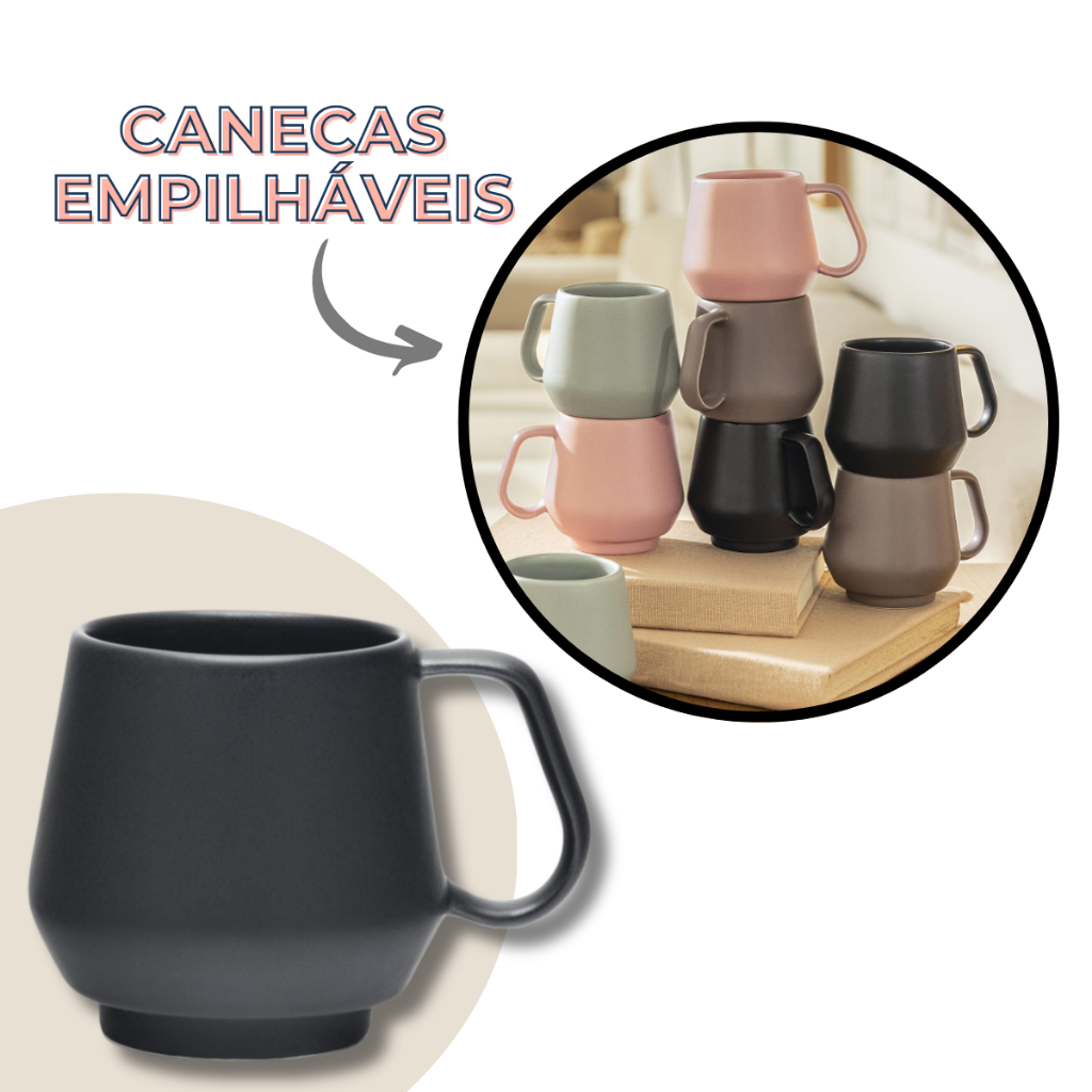 Jogo 4 Canecas Chá Café Chubby 330ml Empilhavel Preto Fosco Acetinado Oxford