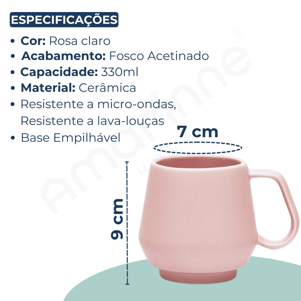 Jogo 4 Canecas Chá Café Chubby 330ml Empilhavel Rosa Claro Fosco Acetinado Oxford