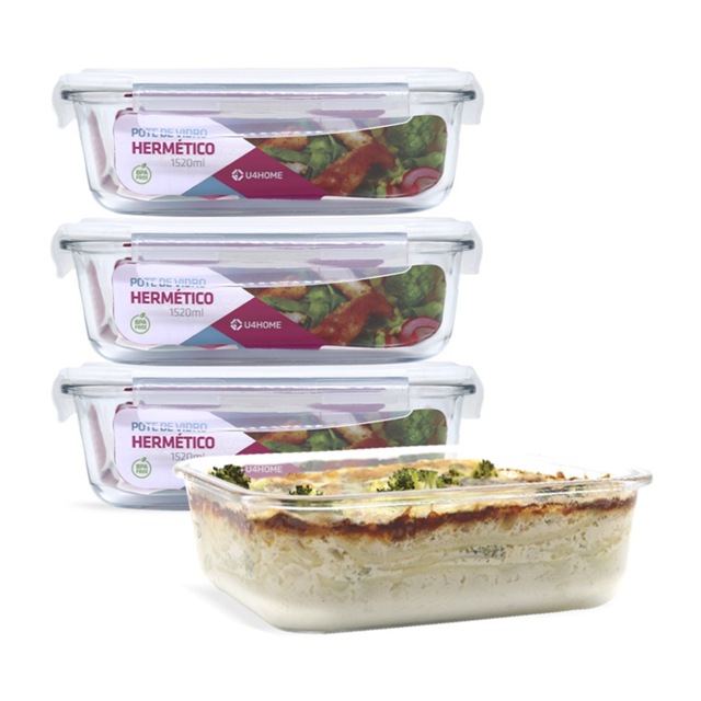 | Jogo 4 Potes de Vidro Retangular 1520ml com Tampa Hermética este produto | R$ 177,97 | — | 5.0/5 | 2 |