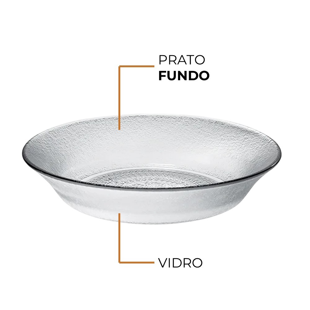 Jogo 4 Prato Fundo de Vidro Acquamarine Transparente 19,5cm Class Home