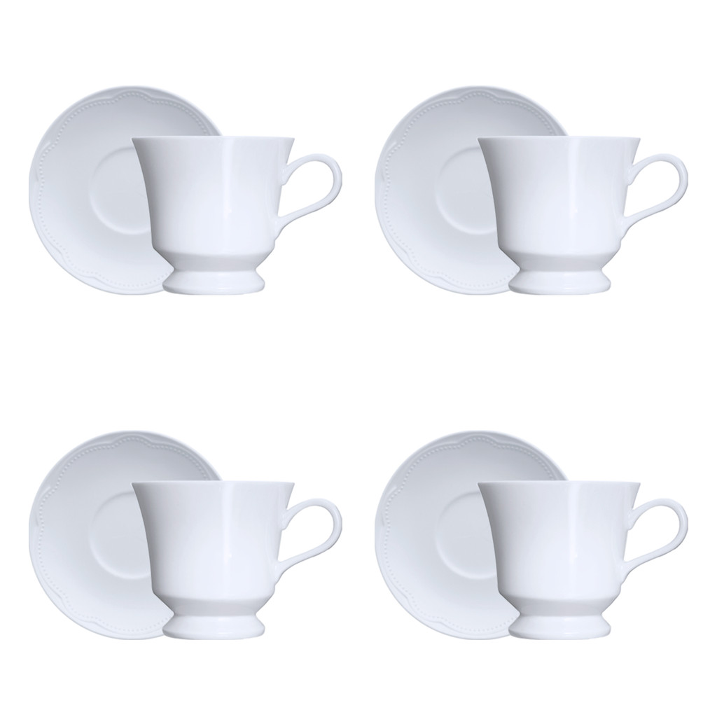 Jogo 4 Xícaras Chá C/ Pires Cottage Porcelana Germer