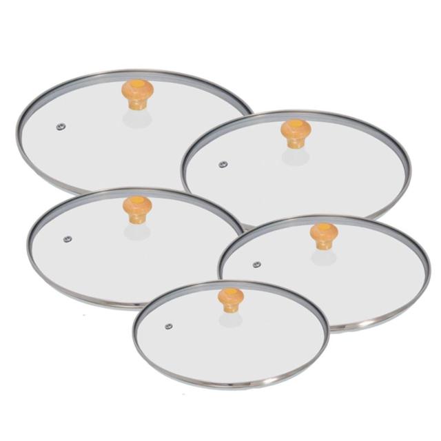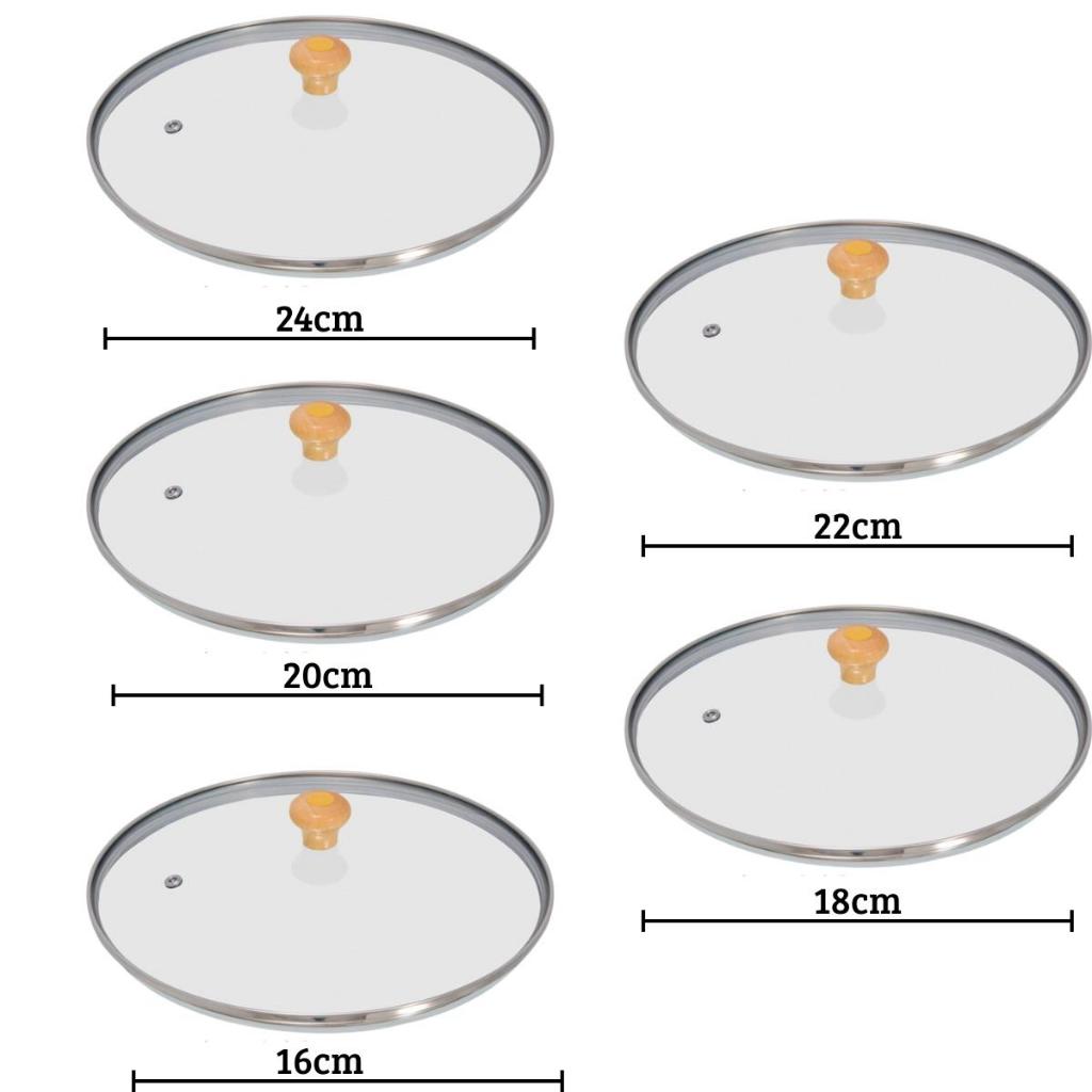 Jogo 5 Tampa de vidro temperado 16, 18, 20, 22, 24cm Para Panelas e Frigideiras