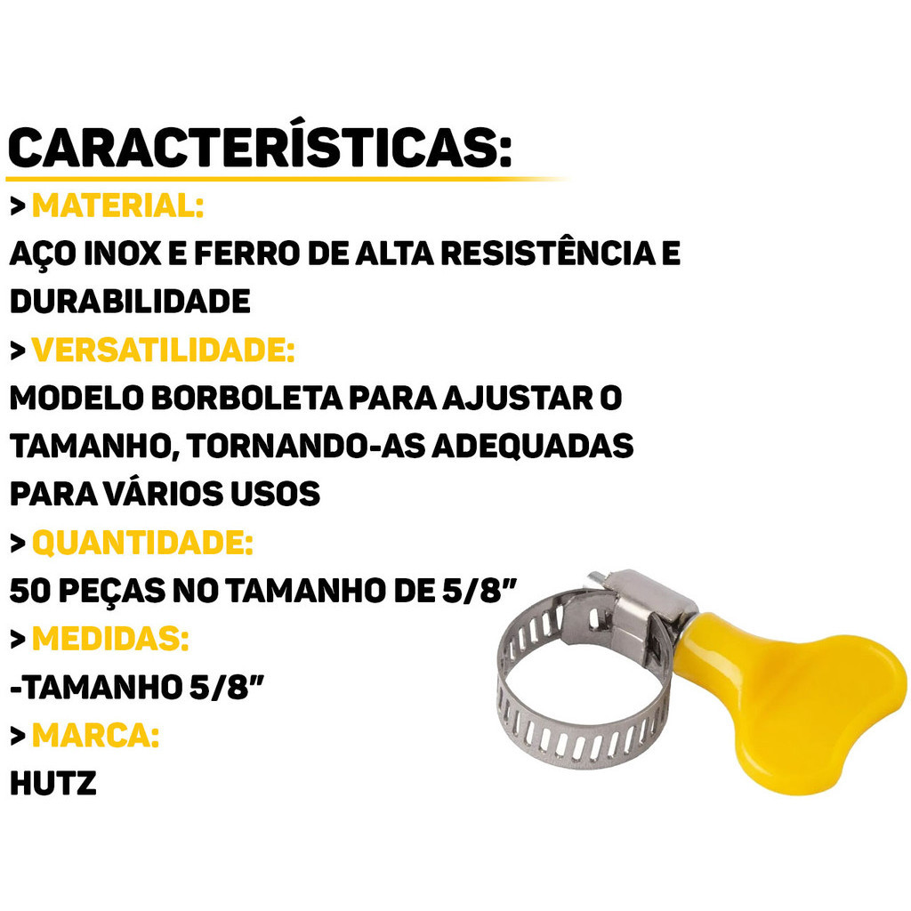 Jogo 50 Abraçadeira Tipo Borboleta Aço Inox E Plástico 5/8 Polegadas Com Rosca Hutz