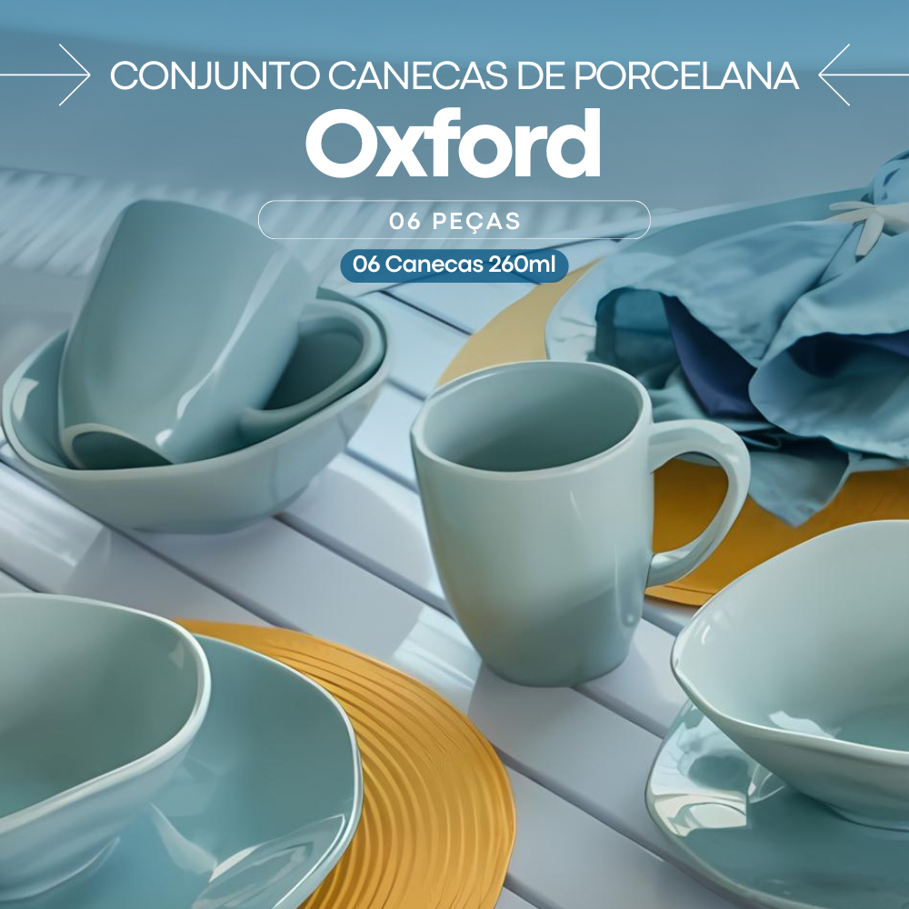 Jogo 6 Canecas Café Chá Ryo Blue Bay Azul Claro 260ml Oxford Porcelanas