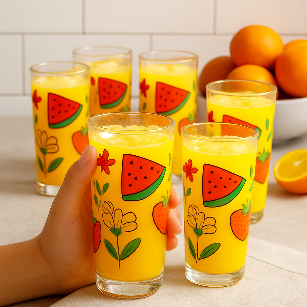 Charmoso e resistente, o Jogo de Copo de Vidro Multiuso Red Fruits traz 6 peças de 255ml, com design retilíneo, transparência cristalina e um delicado tema decorativo de flores e frutas que deixa qualquer mesa mais alegre e sofisticada. Produzidos em vidro de alta qualidade, são ideais para servir água, sucos, refrigerantes, drinks refrescantes e até sobremesas criativas de forma prática e elegante. Versáteis e decorativos, esses copos podem ser usados no dia a dia, em cafés da manhã, almoços, jantares, churrascos ou festas, sempre adicionando charme à ocasião. Além disso, o Jogo de Copos Multiuso Red Fruits é uma excelente opção de presente sofisticado e marcante, perfeito para surpreender amigos e familiares que apreciam beleza, qualidade e funcionalidade em cada detalhe. Uso: Água, Sucos, Refrigerantes, Drinks Refrescantes e até Sobremesas. Material: Vidro. Capacidade: 255ml. Diâmetro: 64mm. Altura: 126mm. Conteúdo da Embalagem: 6 Peças. - Peça medida com o volume máximo até a boca - Diâmetro é medido pela largura maior da peça. - Pode sofrer variação de até 10% de seu volume. Dica de uso e preservação: • Recomendamos que a limpeza da peça seja feita a mão para evitar quebras ou danos. • Limpe a sujeira utilizando uma esponja macia, tire o resíduo de sabão e seque bem. • Não utilize abrasivos ou utensílios pontiagudos. • Evite impactos e não exponha o vidro a mudanças bruscas de temperatura pois poderá causar choque térmico e danificar seu produto. • Para realçar ainda mais o brilho da peça, limpe-a com uma flanela que não solte fiapos, levemente umedecida com álcool.