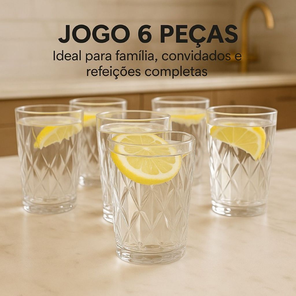 Jogo 6 Copos Vidro Diamond 400ml Água Suco Cerveja Elegante