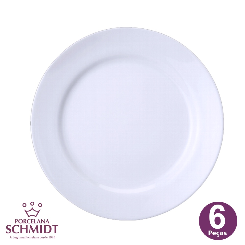 Jogo 6 Pratos Rasos Branco Cilindrica Porcelana Schmidt