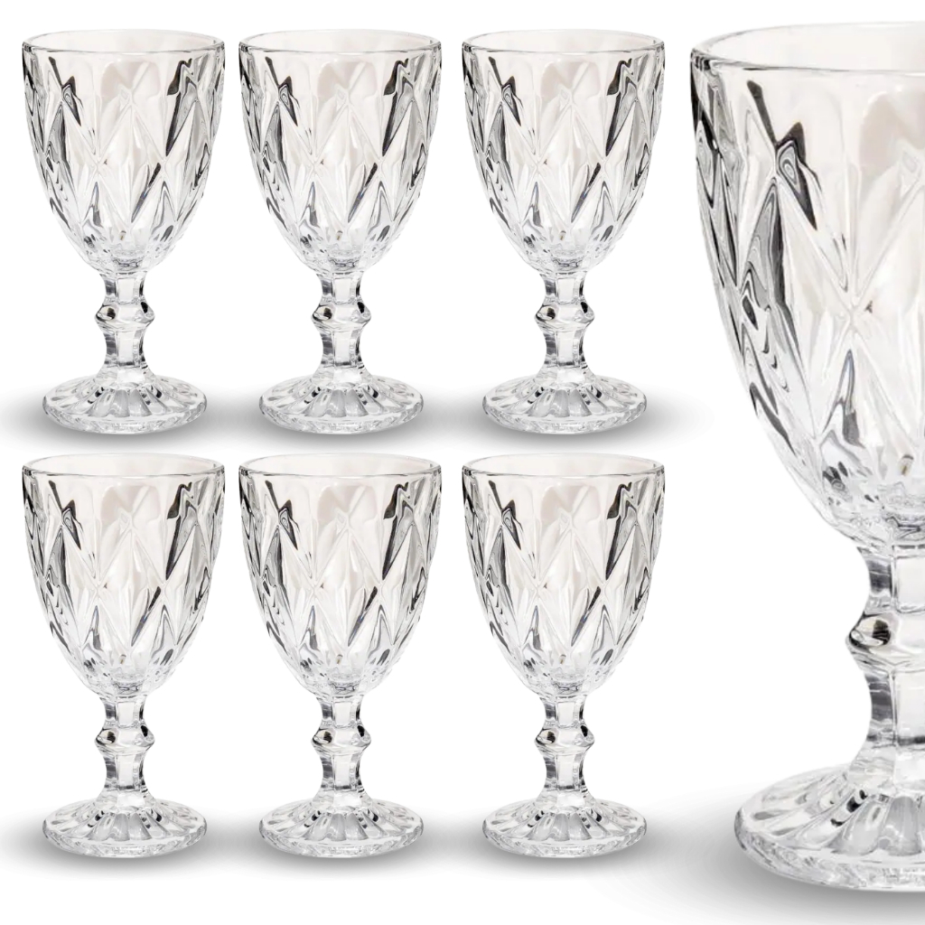 Jogo 6 Taça Diamante Copo Vidro Transparente Bico De Jaca 340ml
