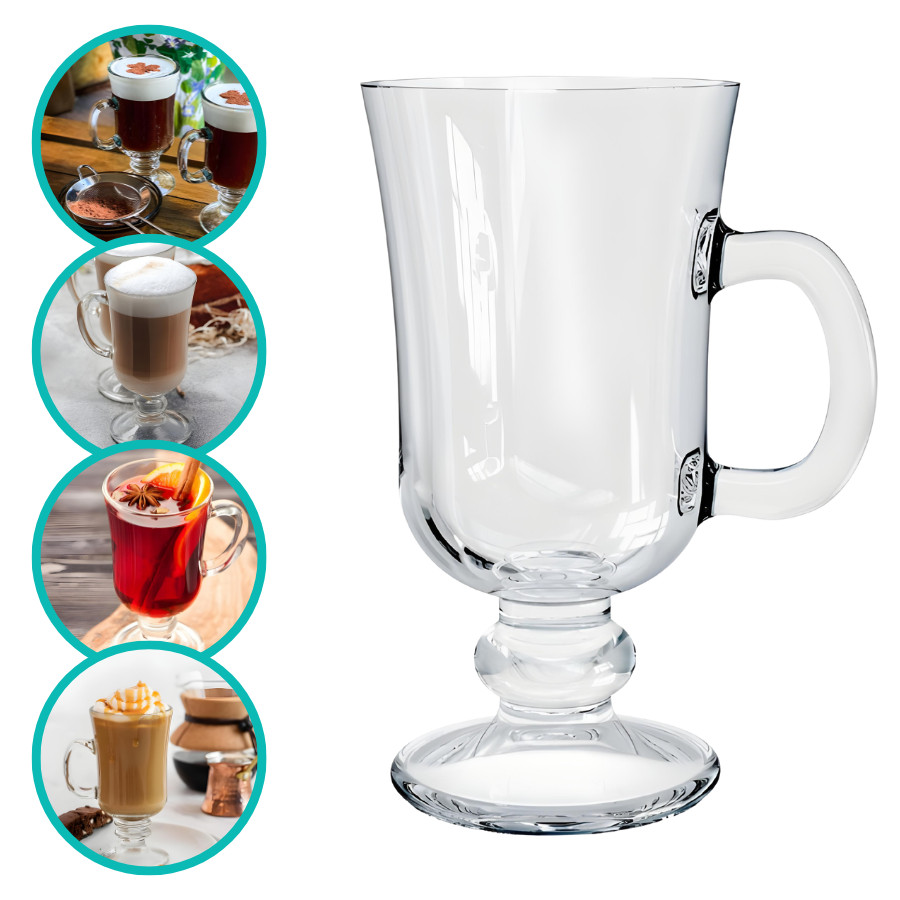 Jogo 6 Taças Caneca Para Capuccino Nespresso Em Vidro Canelado Com Alça