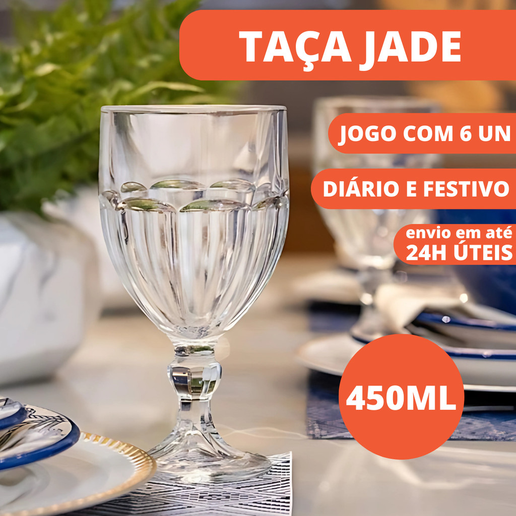 Jogo 6 Taças Jade 450ml Translucida Copos Sorvete