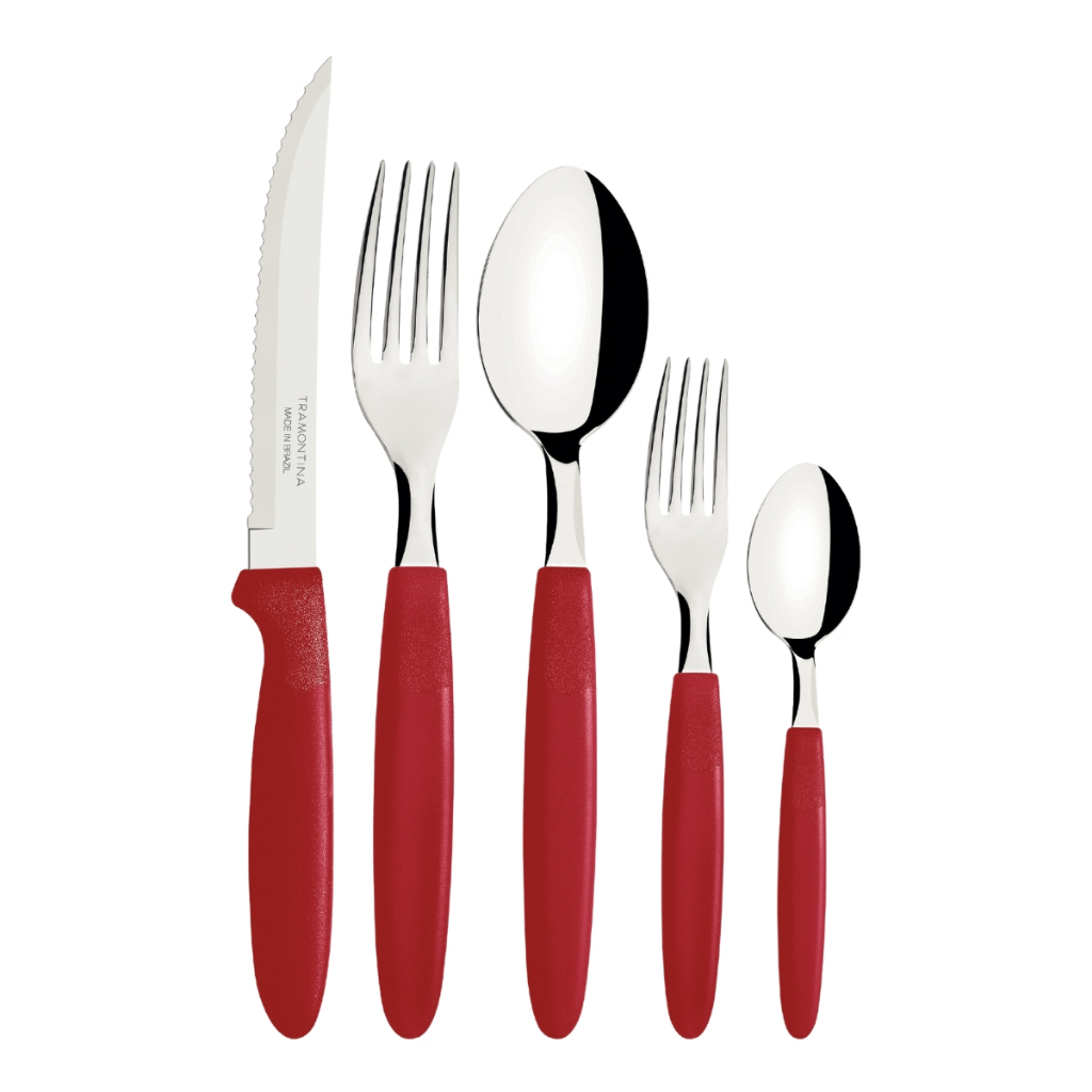 Jogo 60 Talheres Faqueiro Tramontina Faca Garfo Colher Vermelho