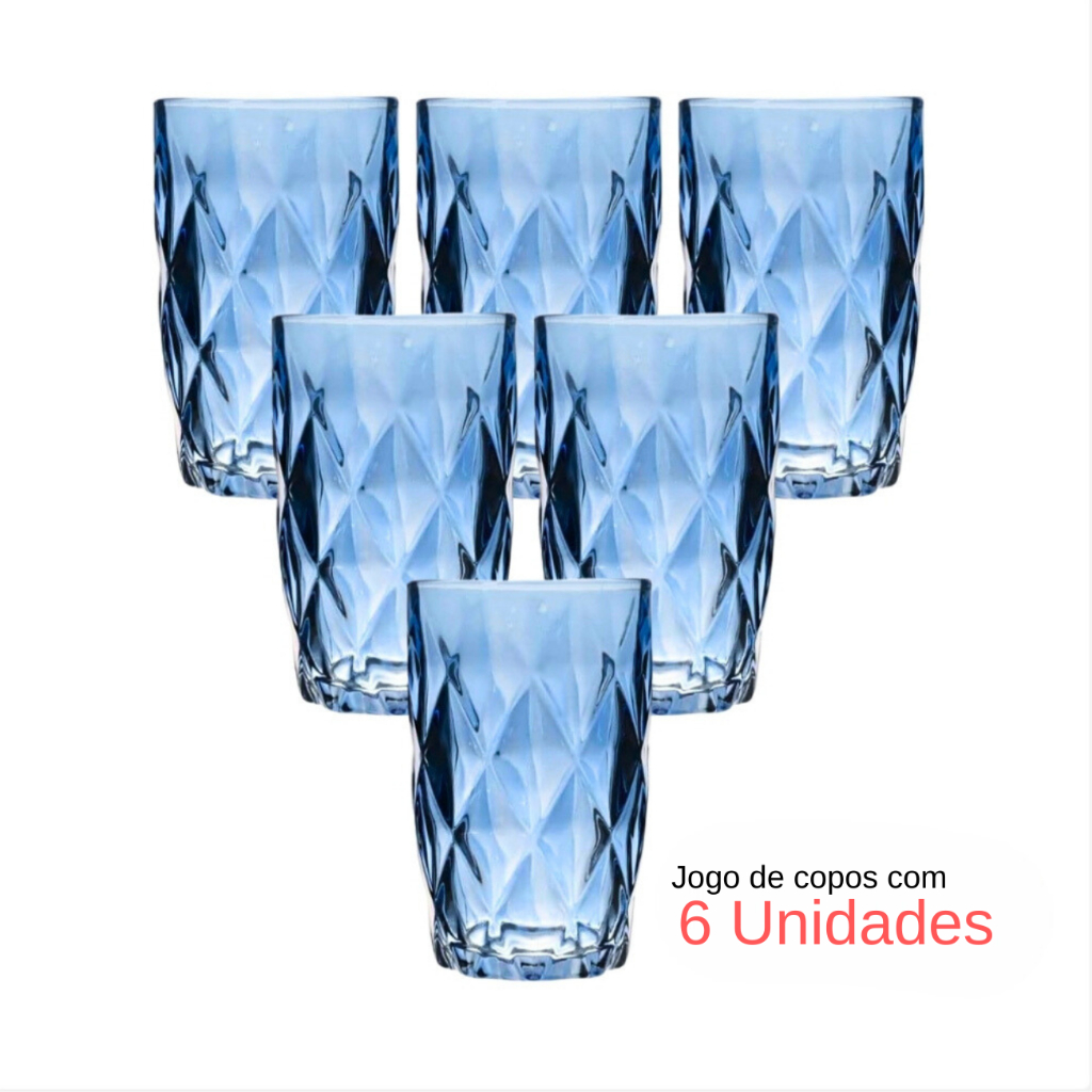 Jogo 6un Copos Diamond Diamante Azul Safira 350ml