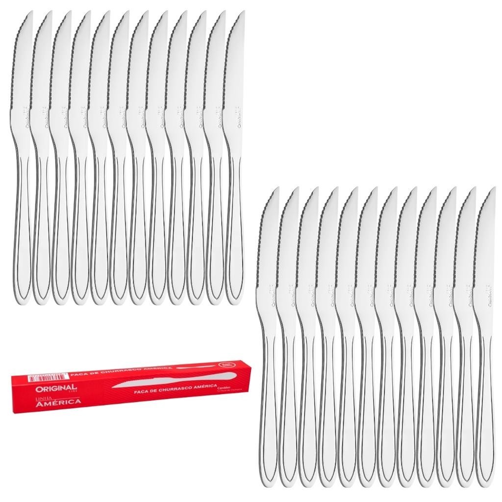 Jogo Aco Inox 24 Faca Churrasco Buffet Restaurante Lanchonete Hotel Cozinha Casa Original Line