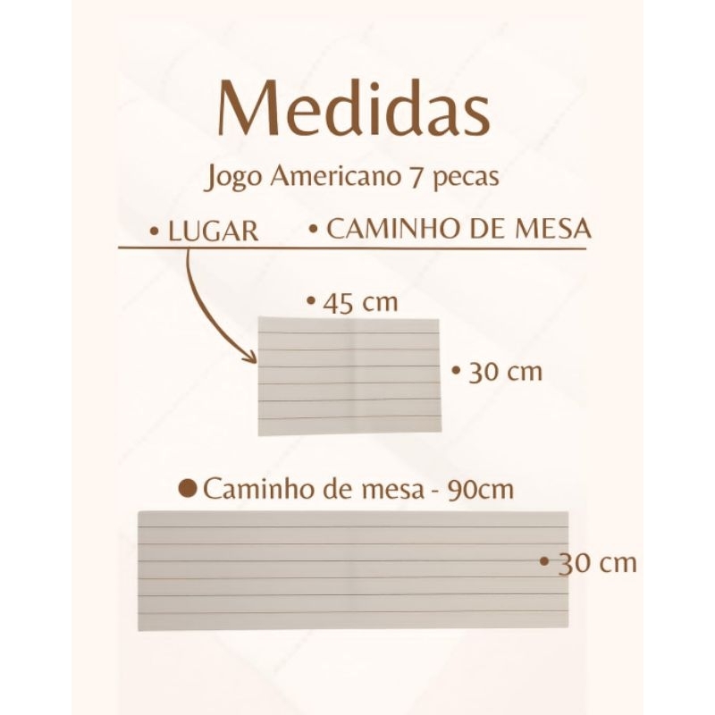 Jogo Americano Luxo 7 peças sendo 1 caminho e 6 lugares tear algodão
