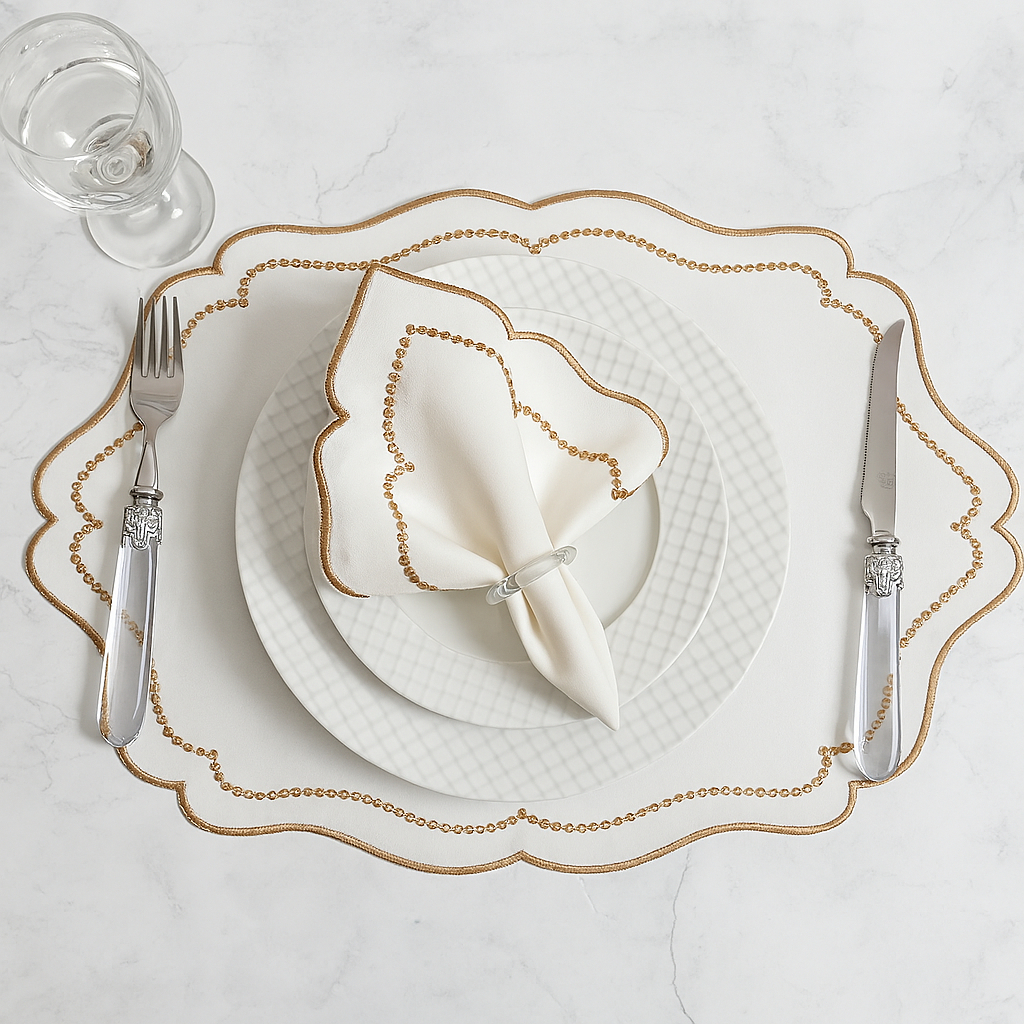 Jogo Americano Realeza Bordado Mesa Posta 4 Lugares a 12 lugares