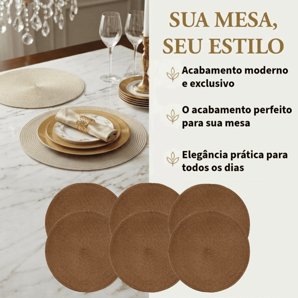 Jogo Americano Redondo 6 Peças Sousplat Fácil De Limpar Premium Luxo