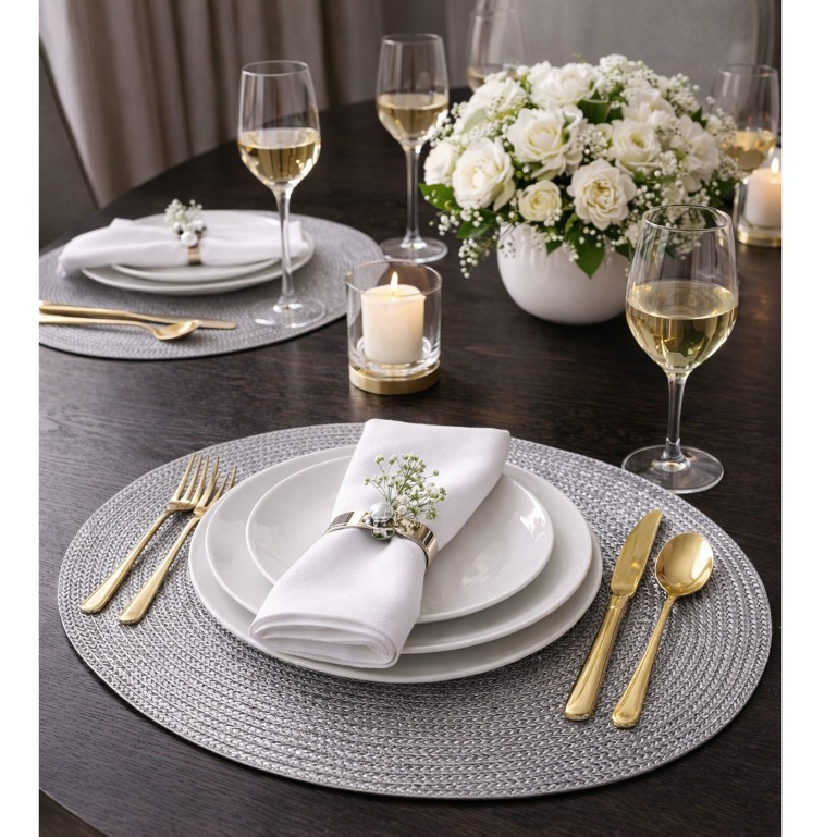 | Kit Sousplat 4 lugares Capa para MDF de 35cm Diâmetro Jacquard Liso | R$ 30,90 | 25% | 4.9/5 | 5 |