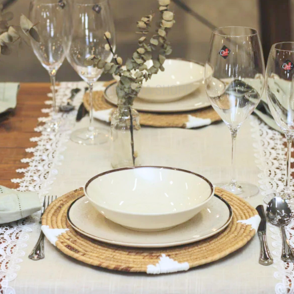 Aparelho de Jantar Oxford Unni Brisa 40 Peças Vento no rosto, o som do mar e a areia nos pés: essa é a inspiração da Coleção Unni Brisa, que traz para dentro de casa a leveza e o frescor do verão. Cada peça é marcada por pequenos detalhes em preto que remetem aos grãos de areia, enquanto as bordas recebem um delicado filete marrom, inspirado em materiais naturais como bambu e corda. O charme da coleção está no acabamento artesanal: na xícara, o filete é aplicado manualmente, tornando cada unidade única e especial. O design clean garante versatilidade, e o destaque vai para o prato fundo com capacidade de 820 ml, ideal para servir sopas e cremes de forma prática e elegante. Benefícios: Beleza natural: inspiração no mar, areia e materiais rústicos. Detalhes artesanais: cada xícara recebe filete manual, garantindo exclusividade. Praticidade no dia a dia: peças resistentes a micro-ondas e lava-louças. Versatilidade: design clean que combina com mesas modernas ou descontraídas. Conteúdo da Embalagem: 8 pratos rasos – 26 cm 8 pratos fundos – 20,5 cm (capacidade 820 ml) 8 pratos de sobremesa – 20 cm 8 xícaras de chá 200ml + 8 pires – 14 cm Especificações: Linha/Decoração: Unni Brisa Material: Cerâmica de alta qualidade Cor: Marrom e Off White Formato: Redondo Decoração: Estampado Uso: Resistente a micro-ondas e lava-louças Embalagem: Caixa litografada (ideal para presentear) Garantia: 90 dias (defeitos de fabricação)