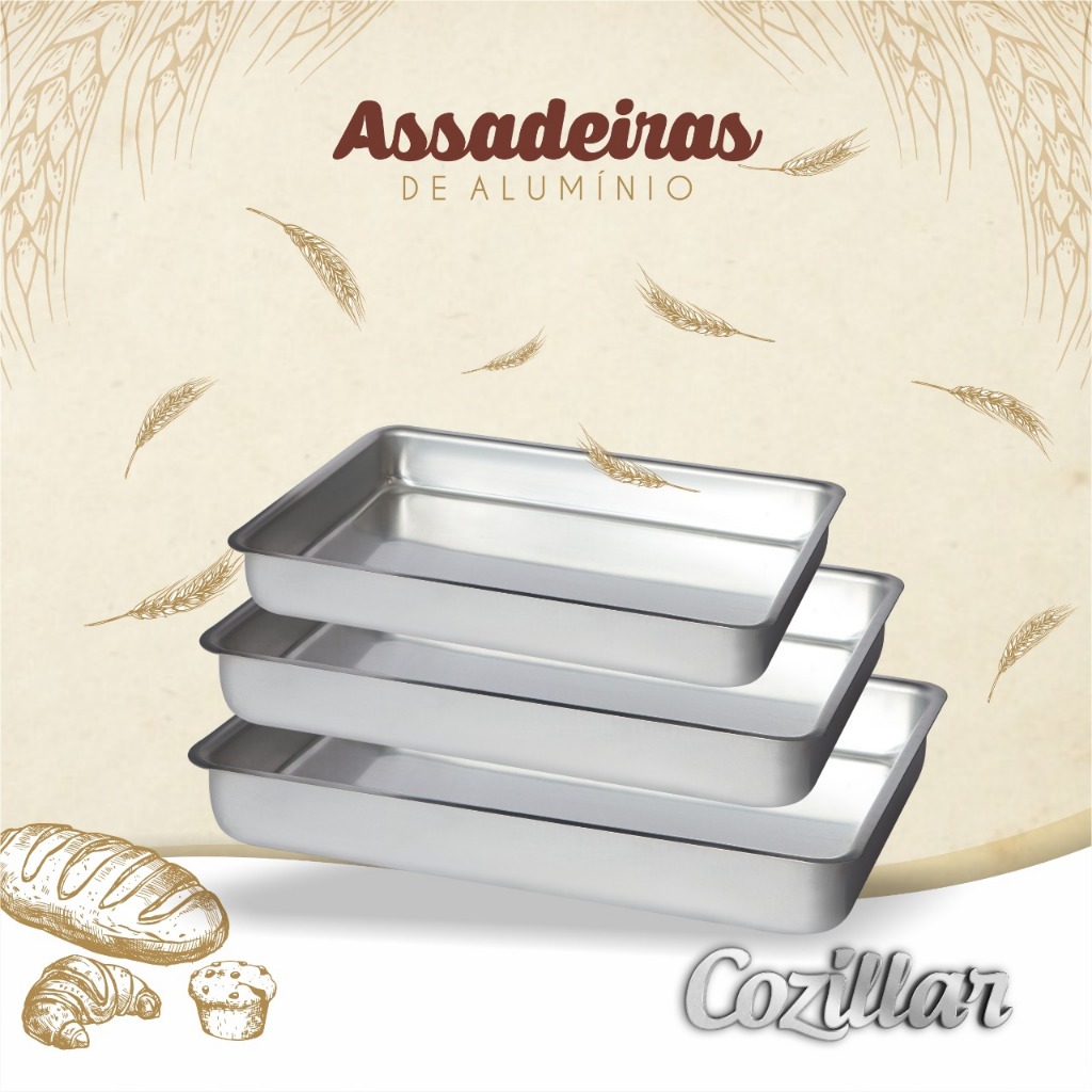 O cheiro de pão ou de bolo assando enche a casa com as melhores sensações. Para o melhor resultado das suas receitas observe a qualidade das formas e assadeiras. A espessura do alumínio permitem cozimento uniforme, deixando suas criações ainda mais saborosas. Descrição dos Produtos Assadeira nº01 - Altura: 5 cm - Largura: 17,5 cm -Comprimento: 26,5 cm -Diagonal: 31 cm Assadeira nº02 - Altura: 5 cm - Largura: 21 cm - Comprimento: 31 cm - Diagonal: 35,8 cm Assadeira nº03 -Altura: 5 cm - Largura: 23,5 cm - Comprimento: 34,5 cm - Diagonal: 40 cm Produto destinado a utilização de fogão a gás.