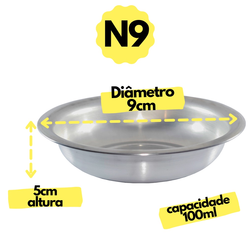 Kit de Bacias Multiuso em Alumínio Polido e Resistente N09 N15 N20 CARACTERÍSTICAS; - Tipo: Bacia de Alumínio - Material Alumínio - Acompanha Tampa: Não - Material da Tampa: N/A - Super Resistentes - Excelente Durabilidade - Não Enferruja MEDIDAS APROXIMADAS: N9 Altura: 5cm Largura: 9cm Diâmetro: 9cm Capacidade: 100ml N15 Altura: 6,5cm Largura: 15cm Diâmetro: 15cm Capacidade: 350ml N20 Altura: 7cm Largura: 20cm Diâmetro: 20cm Capacidade: 600ml Produto pode usado: • Uso industrial, hotéis, restaurantes, escolas. • Fogões a lenha, Fogões elétricos, Fogões industriais SOBRE A EMPRESA: Está no mercado desde 2017, nossos produtos são rigorosamente vistoriados por profissionais altamente qualificados para certificar que você receberá em seu lar somente produtos com altíssima qualidade. SELO CERTIFICADO DO INMETRO GARANTIA DE FÁBRICA A DK Shopp trás para você e seu lar, praticidade e muita qualidade em produtos em alumínio repuxado polido.