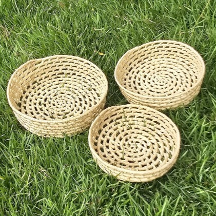 Jogo de Bandejas Artesanais em Palha de Carnaúba – Beleza Natural e Versatilidade Esse conjunto de bandejas é feito à mão com palha de carnaúba, trazendo um toque rústico e elegante para sua casa. Ideais para servir alimentos, organizar objetos ou decorar ambientes, essas peças combinam durabilidade e charme natural. 📏 Medidas: P (Pequena): 21 cm de diâmetro na boca, 20 cm no fundo e 4 cm de altura. M (Média): 22 cm de diâmetro na boca, 21 cm no fundo e 5,5 cm de altura. G (Grande): 24 cm de diâmetro na boca, 22 cm no fundo e 7 cm de altura. Perfeito para quem valoriza produtos sustentáveis e artesanais. Transforme seu ambiente com esse lindo jogo de bandejas!