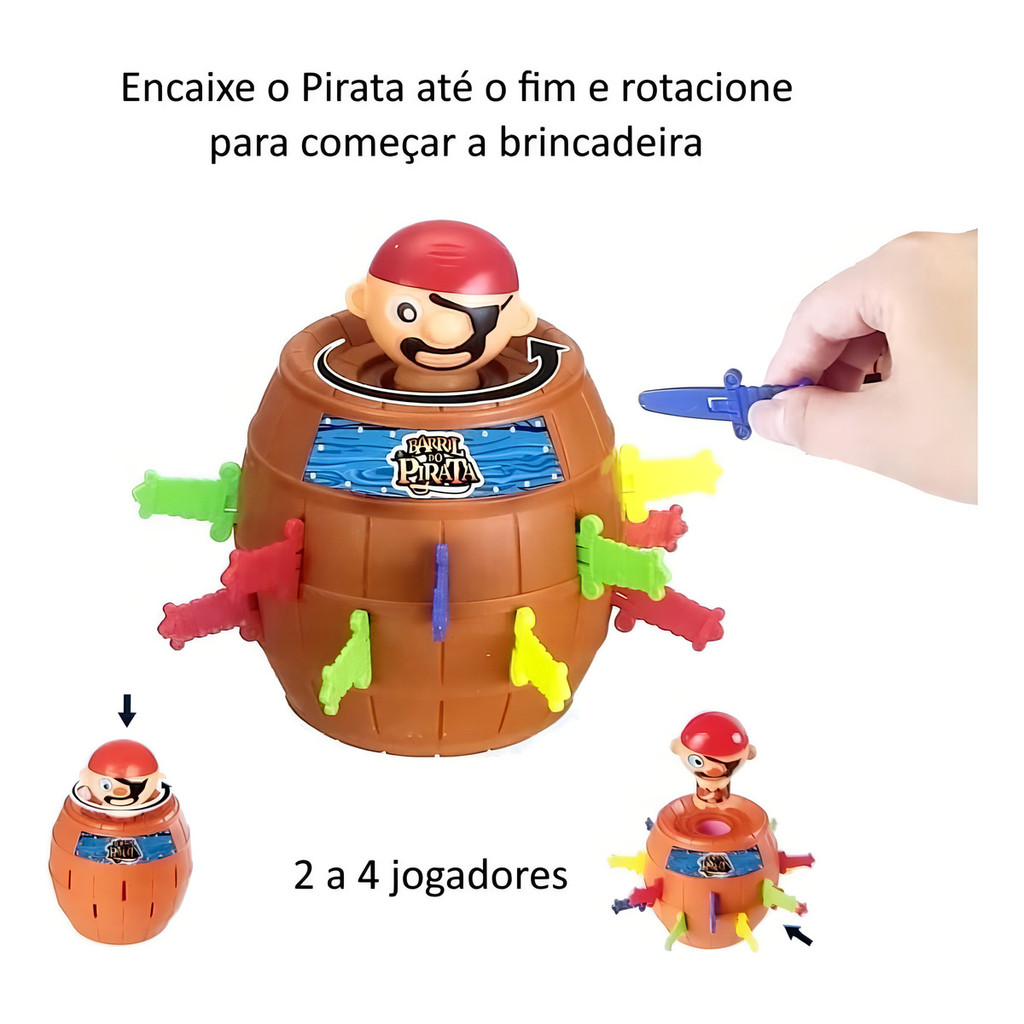 Jogo Barril Pula Pirata Brinquedo Infantil com 18 Peças: Jogo Barril Pula Pirata! Ideal para reunir a família e criar momentos únicos de diversão. Kit com: 1 Barril colorido e resistente. 1 Pirata em destaque 18 espadinhas de plástico Como brincar? 1. Insira o pirata no barril. 2. Cada jogador, na sua vez, escolhe e insere uma espadinha no barril. 3. A qualquer momento, o pirata pode saltar inesperadamente! Quem fizer ele pular, perde a rodada! Benefícios: Estimula o raciocínio lógico. Incentiva a interação social e trabalho em equipe. Perfeito para desenvolver habilidades motoras e reflexos. Indicado para crianças a partir de 3 anos Material de alta qualidade e seguro para crianças. Leve e fácil de transportar, diversão em qualquer lugar
