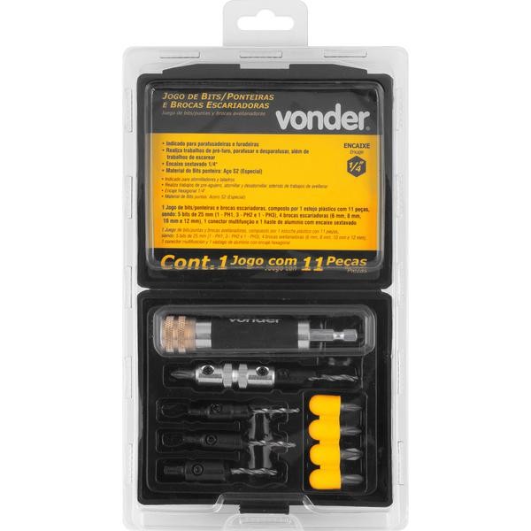 Jogo Bits Ponteiras Escariadores com 11 peças Encaixe 1/4" Vonder